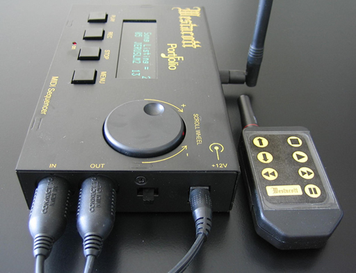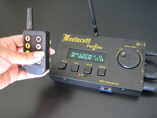The Westacott PortFolio is a stand-alone MIDI sequencer unit that can record the musical performances of MIDI equipped instruments, and store them onto SD (Secure Digital) memory cards as MIDI data files. Similarly the PortFolio can also play back previously stored performances from the SD card to the instrument. These performances can either have been made with the Westacott PortFolio, or any other device capable of creating a MIDI ‘type 0’ file format.